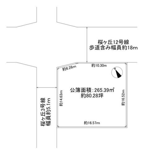 | 接道状況 | 北 18.0m 公道 接面16.5m西 5.1m 公道 接面14.6m | ||||
