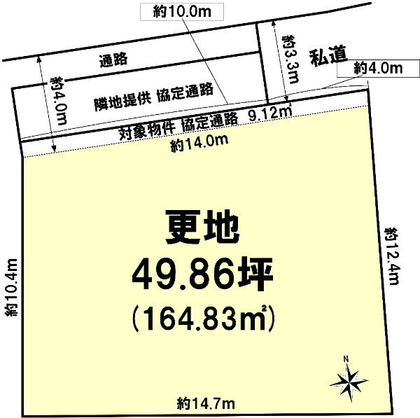 | 建ぺい率・容積率 | 40%・60% | 私道負担・道路 | 42.38㎡、北3.3m幅(接道幅4m) | ||