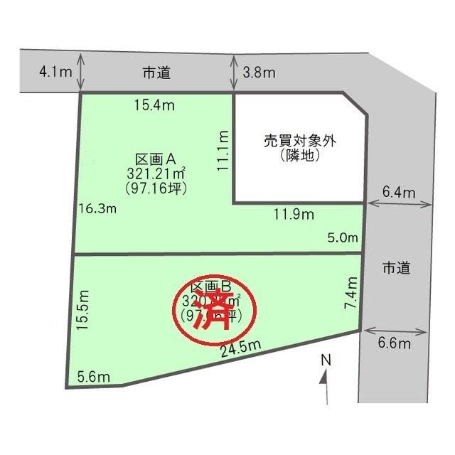 | 建ぺい率・容積率 | 建ペい率:50%、容積率:80% | 私道負担・道路 | 道路幅:3.8m~6.6m、コンクリート舗装 | ||