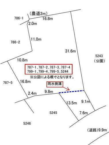 | 接道状況 | 南東 9.9m 公道 接面7.6m北 2.0m 公道 接面16.8m | ||||