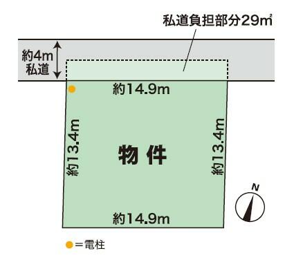 | 接道状況 | 北 4.0m 私道 接面14.9m 位置指定有 | ||||