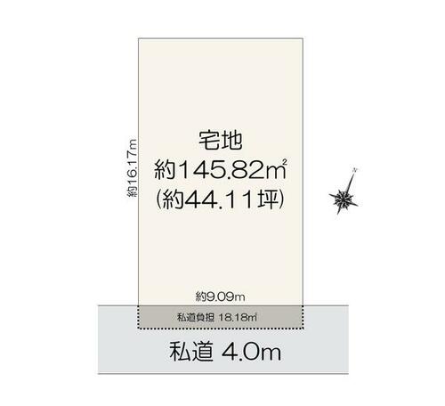 | 接道状況 | 南東 4.0m 私道 接面9.0m | ||||
