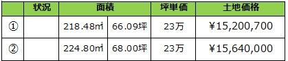 最多価格帯 | - | 販売区画数/総区画数 | 2区画/2区画 | ||