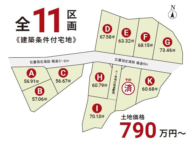 最多価格帯 | 900万円台(5区画) | 販売区画数/総区画数 | 11区画/11区画 | ||