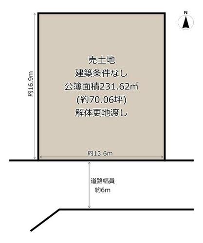 | 接道状況 | 南 6.0m 公道 接面13.6m | ||||