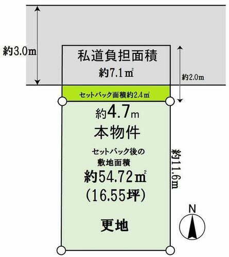 | 接道状況 | 北 3.0m 私道 接面4.7m | ||||