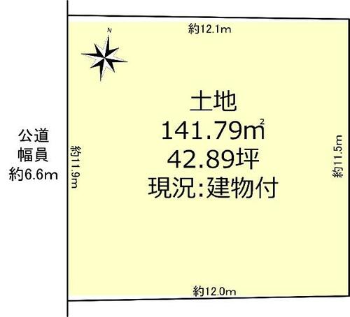 | 接道状況 | 西 6.6m 公道 接面11.9m | ||||