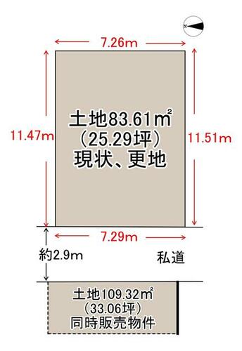 | 接道状況 | 西 2.9m 私道 接面7.2m | ||||