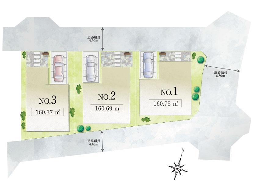 | 建ぺい率・容積率 | 建ぺい率:60%、容積率:150% | 私道負担・道路 | 道路幅:4.4m~6.8m、アスファルト舗装 | ||