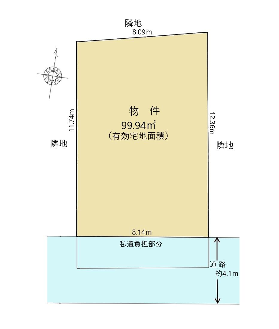 | 建ぺい率・容積率 | 60%・200% | 私道負担・道路 | 17.65㎡、南4.1m幅(接道幅8.1m) | ||