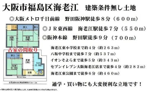 | 備考 | ■大阪市福島区海老江■建築条件無し土地■大阪メトロ千日前線 野田阪神駅徒歩8分(約600m)■JR東西線 海老江駅徒歩7分(約550m)■阪神本線 野田駅徒歩9分(約700m)■通学・買い物に大変便利な立地です!■海老江東小学校 徒歩4分(約263m)■八坂中学校 徒歩7分(約537m)■イオンそよら 徒歩5分(約343m)■セブンイレブン大阪海老江店 徒歩4分(約282m)■海老江東公園 徒歩6分(約460m)■西側私道約1.5~2mに接道■私道負担別途12㎡・私道負担:あり12平米・■大阪市福島区海老江■建築条件無し土地■大阪メトロ千日前線 野田阪神駅徒歩8分■JR東西線 海老江駅徒歩7分■阪神本線 野田駅徒歩9分■通学・買い物に大変便利な立地です / 条件等:相談 | ||||