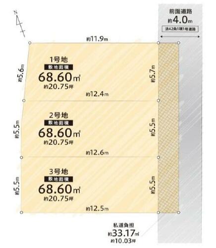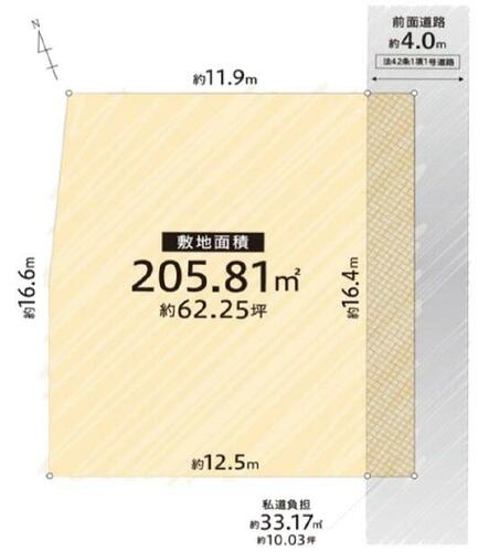 | 接道状況 | 東 4.0m 私道 接面16.4m | ||||