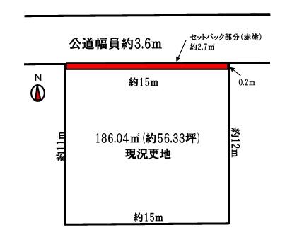 | 建ぺい率・容積率 | 80%・240% | 私道負担・道路 | 2.7㎡、北3.6m幅(接道幅15m) | ||