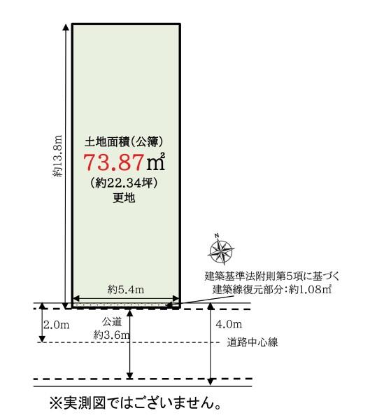 建ぺい率・容積率 | 60%・160% | 私道負担・道路 | 1.08㎡、南西4m幅 | ||