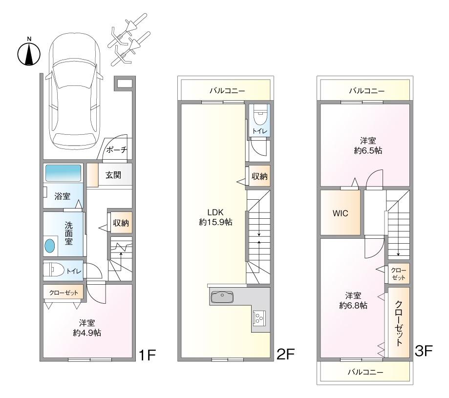 | 建ぺい率・容積率 | 80%・200% | 私道負担・道路 | 無、北8m幅(接道幅4.1m) | ||