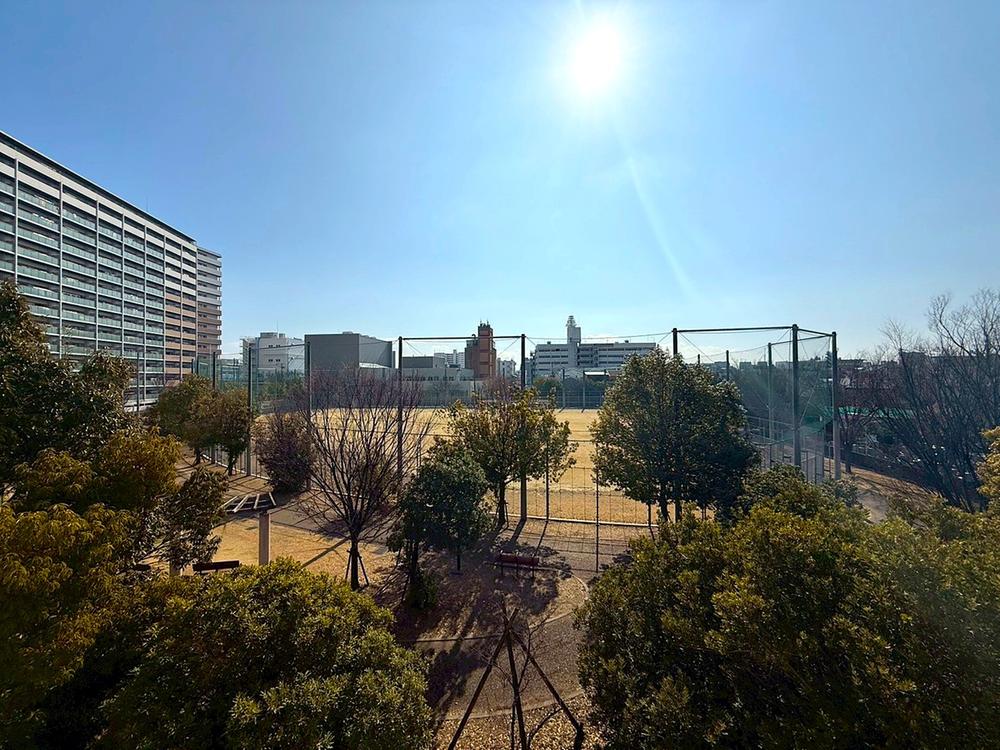 【3階からの眺望】「南側が公園」という、得難い立地条件。公園の木々を、3階の窓から見下ろす贅沢、四季折々の景色を切り取ります。 目の前が公園だからこそ叶う、明るく開放的なプランニングが可能です。