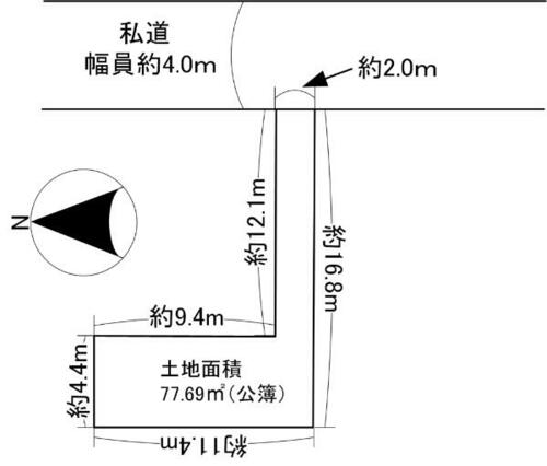 | 接道状況 | 東 4.0m 私道 接面2.0m | ||||