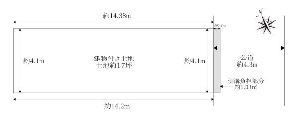 | 建ぺい率・容積率 | 60%・172% | 私道負担・道路 | 1.03㎡、東4.3m幅(接道幅4.1m) | ||