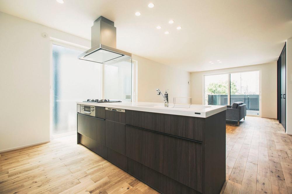 家族を見渡せるカウンターキッチンです。奥様の憩いのスペースのなる様に少し広めに設計したり、アイランドキッチンにしたり、様々な要望にお応えできます。設計士と存分にお打合せください。※写真は施工例。