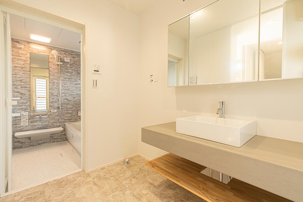 デザイン性を重視したメラミンカウンター化粧台や、実用性を重視した三面鏡+フルスライド収納の化粧台など、様々な提案が可能。毎日使う空間だからこそ使いやすさとデザインにこだわりたいですね!※写真は施工例。