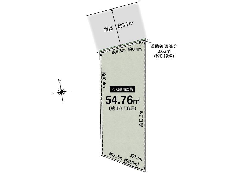 | 建ぺい率・容積率 | 60%・200% | 私道負担・道路 | 0.63㎡、北3.7m幅(接道幅4.8m) | ||