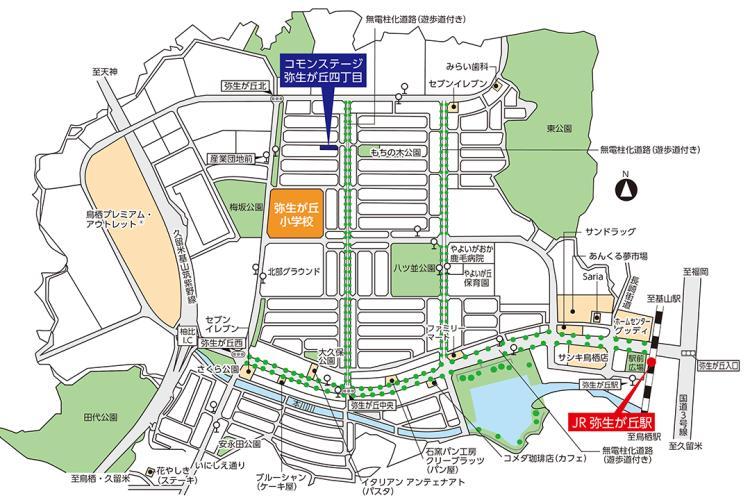 弥生が丘地域は、鳥栖市の北部に位置する丘陵地で1997年より開発が進んだ街。近隣には高速道路、JR鹿児島本線「弥生が丘」駅などアクセスに優れた利便性のある地域といえます。