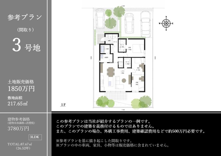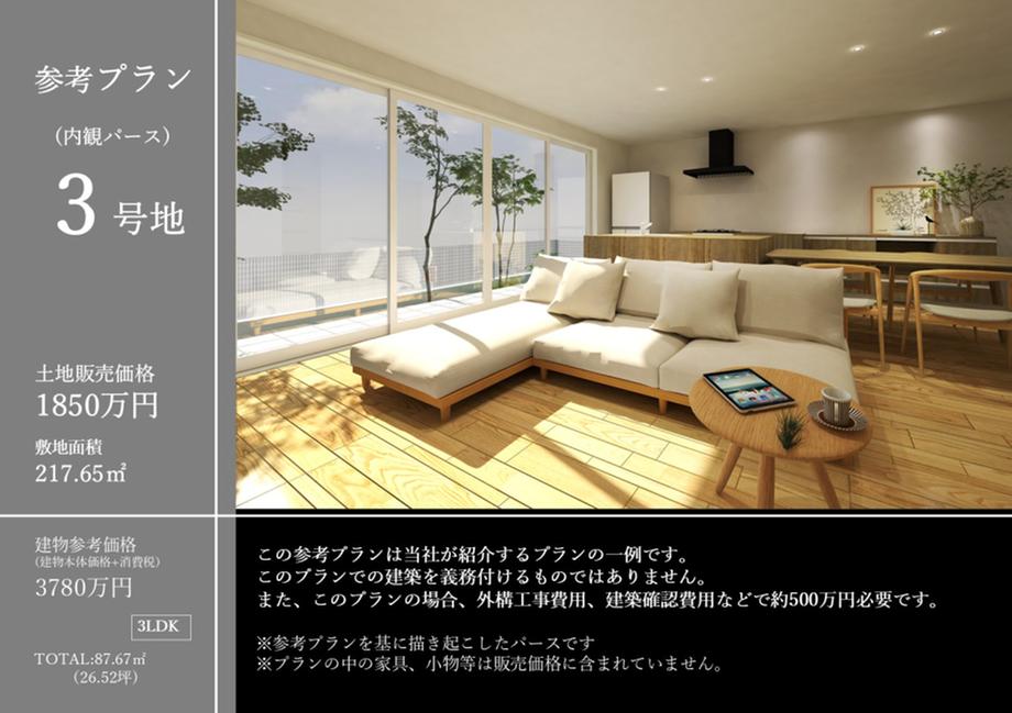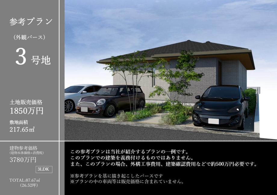 3号地 65.83坪 土地販売価格1850万円(坪28.2万円)