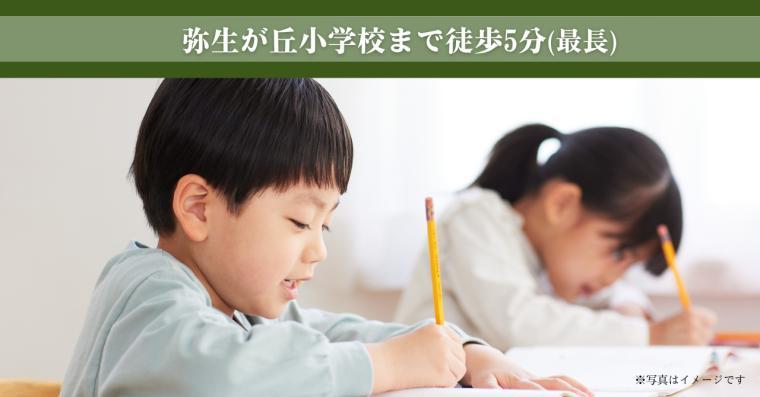 弥生が丘小学校まで360m 徒歩5分。令和4年度より、「コミュニティ・スクール」(学校運営委員会設置校)を導入し、「地域と共にある学校づくり」に取り組んでいます。(2025年3月撮影)