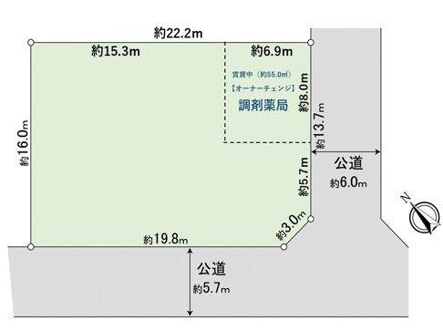 | 建ぺい率・容積率 | 60%・200% | 私道負担・道路 | 無、南西5.7m幅(接道幅19.8m) | ||
