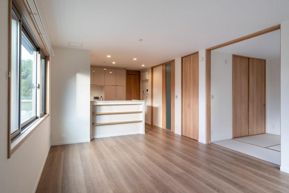 建物プラン例(7号地)和室畳の心地よさが暮らしにやさしく寄り添う4.5帖和室。LDKとつながることで、上質なくつろぎ空間が生まれます。
