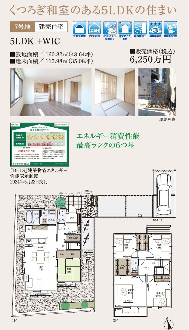 建物プラン例(7号地)建物価格6,250万円、敷地面積160.82㎡、建物面積115.98㎡、間取り5LDK