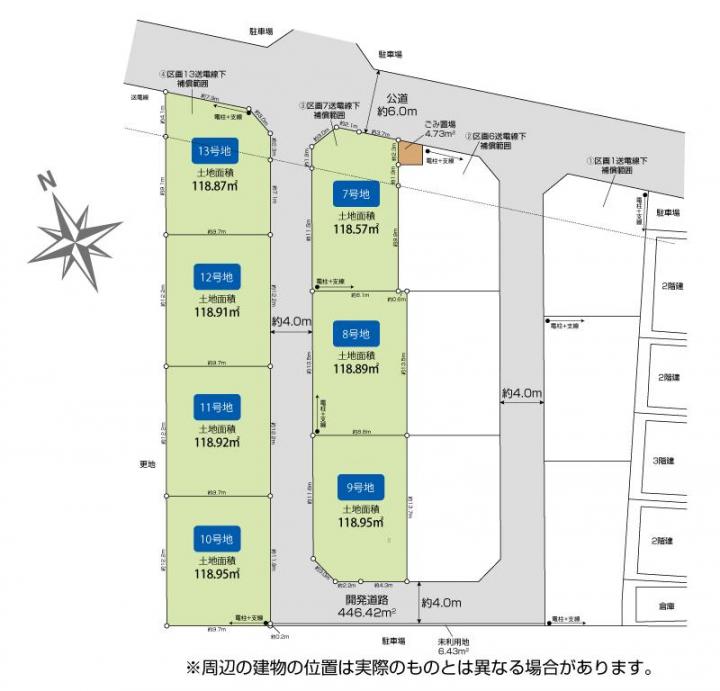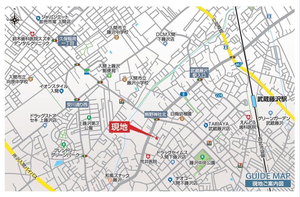 | その他制限事項 | 【その他法令】航空法⇒入間基地:水平表面、横田基地:Gゾーン(水平表面)、国土利用計画法、公有地拡大推進法⇒届出要、生産緑地法、農地法⇒5条届出要、区画整理完了地【備考】電柱及び支線、トレンチ管、引込み管の位置変更はお受けできません。【地区計画】武蔵藤沢駅周辺地区地区計画【送電線路下】7号地:32.10m2、13号地:39.73m2※送電線下保証対象面積に応じて東京電力により保証料が支払われます。※対象面積は東京電力の再測定により決まります。※ゴミ置場と開発道路は入間市寄付採納予定※2階建限定 | ||||