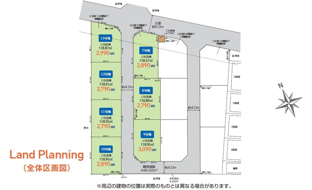 | 備考 | 設備:公営水道、東京電力、都市ガス、本下水、開発許可番号:指令第2025-0310号(令和7年10月31日)、開発面積:2002.62㎡、【未利用地】6.43m2×各1/13 | ||||