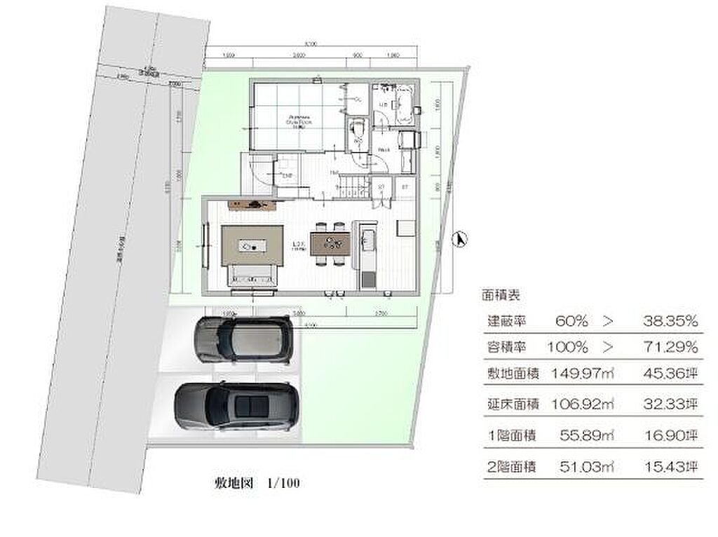 建ぺい率 | 60% | 容積率 | 200% | ||