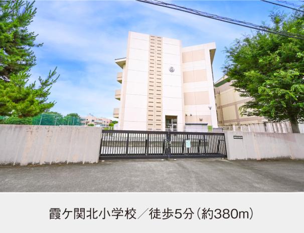 霞ケ関北小学校まで380m 徒歩5分。「かしこく・きよく・たくましく」の学校教育の下、“自分のよさ(知性、感性)を発揮し、心豊かにたくましく生きる子どもの育成”に尽力している小学校です。