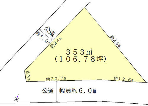 | 接道状況 | 西 5.0m 公道 接面27.0m南 6.0m 公道 接面34.0m | ||||