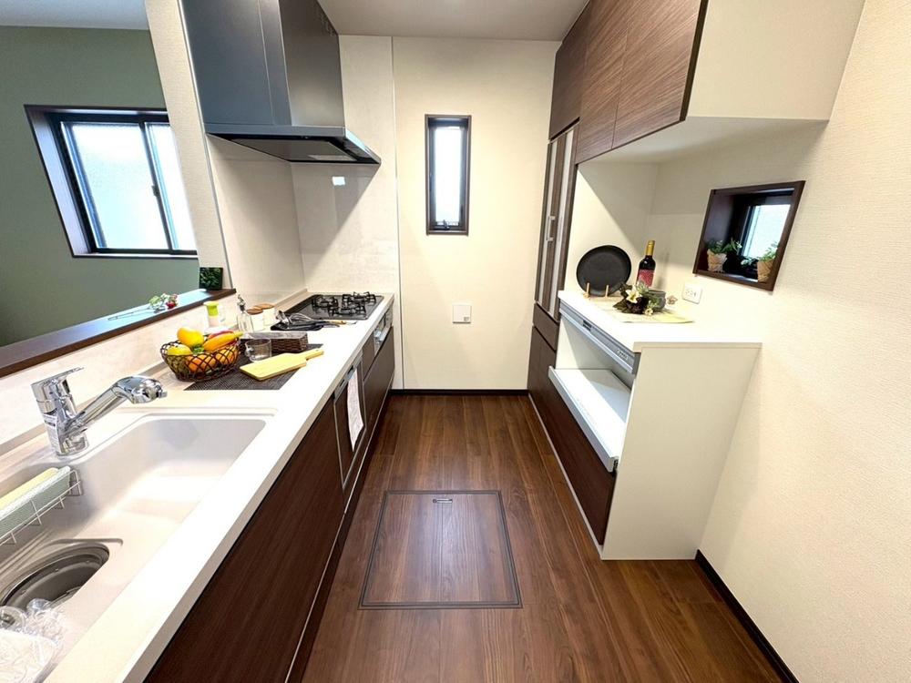 システムキッチン クリナップ「KT」(施工例)お手入れしやすいシームレス接合。嬉しい食洗器標準装備!家族の時間を増やす便利なアイテムです。リビングとコミュニケーションを取りながら料理ができる対面式。