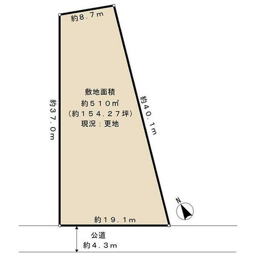 | 接道状況 | 南西 4.3m 公道 接面19.1m | ||||