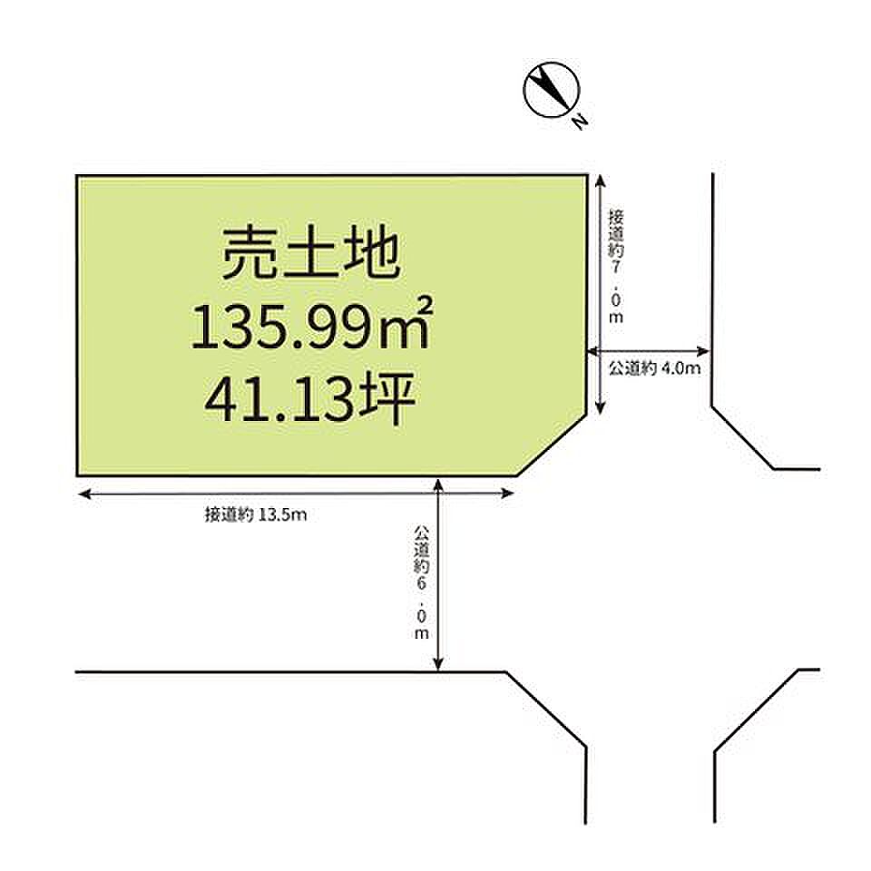| セットバック | 無 | 接道状況 | 二方 ( 北東 6m 公道 間口13.5m ) ( 北西 4m 公道 間口7m ) | ||