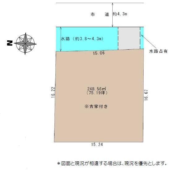 | その他制限事項 | ※他の法令上の制限/都市計画法第34条第12号区域。(・既存集落内であるため、第三者の再建築は可能。・区画形質変更は不可(分筆不可)。・農業集落排水地域。下水道と同じ要領であるが、受益者負担金(202,000円)が発生する。また、世帯人数において2ヶ月に一度の使用料も発生する。・水路占有の橋はやり替えを推奨する。)※接道状況:前面に水路有り。※設備:本下水(農業集落排水)。※引渡条件:現況有姿。 | ||||