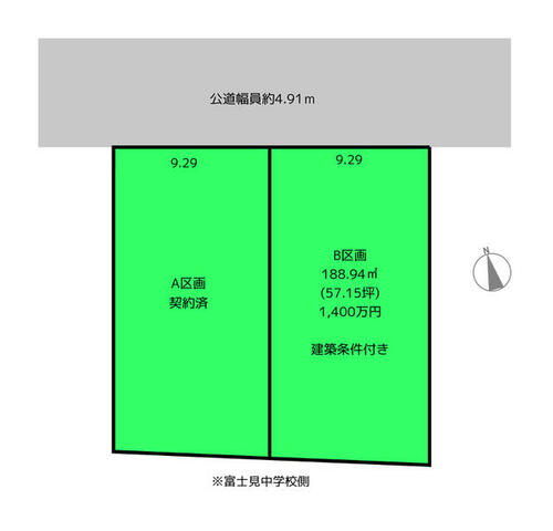 | 備考 | ●ライフラインは全て前面道路内に埋設となります。敷地内引き込み費用は買主の負担です。●敷地一部高圧線下となります。・私道負担:なし・人気の中央エリア!富士見中学至近です。・仲介手数料:不要 | ||||