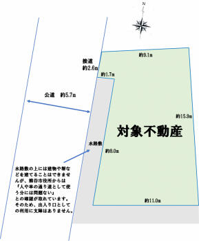 | 接道状況 | 西 5.7m 公道 接面2.6m | ||||