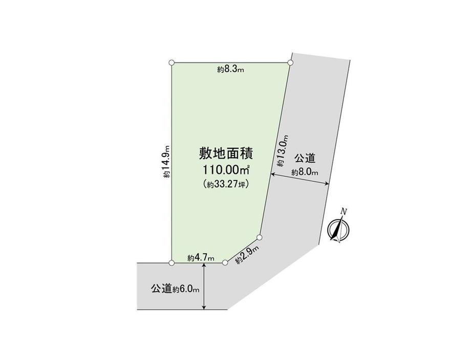 建ぺい率・容積率 | 60%・200% | 私道負担・道路 | 無、東8m幅(接道幅13m)、南6m幅(接道幅4.7m) | ||