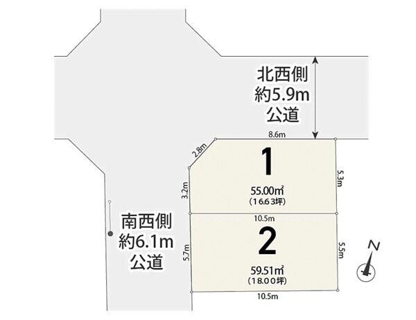 | 建ぺい率・容積率 | 60% 200% | 私道負担・道路 | 道路幅:5.9m・6.1m | ||