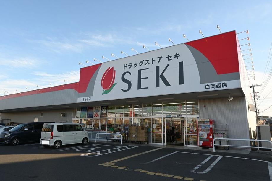 ドラッグストアセキ 白岡西店まで900m ドラッグストアセキ 白岡西店 年中無休で営業 駐車場は28台分完備しており、車での来店にも便利です。店内では、医薬品や日用品、食品など幅広い商品を取り扱っています。