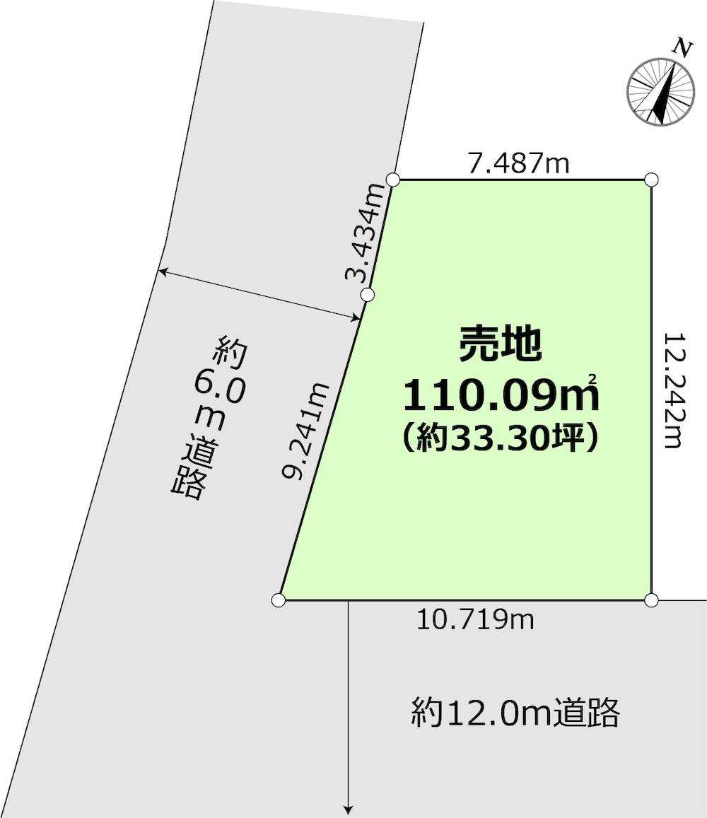 | 建ぺい率・容積率 | 60%・80% | 私道負担・道路 | 無、南12m幅(接道幅10.7m)、西6m幅(接道幅12.6m) | ||