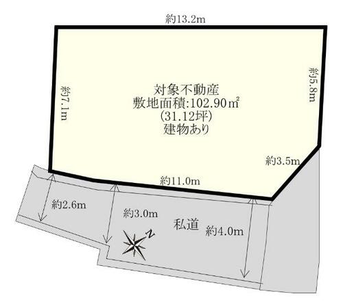| 接道状況 | 南東 4.0m 私道 接面14.5m 位置指定有 | ||||