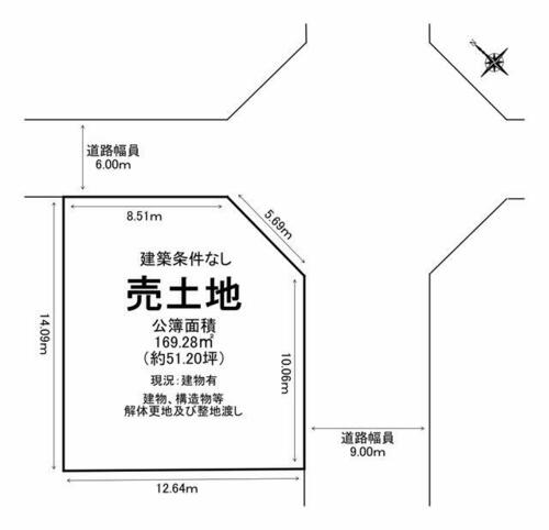 | 接道状況 | 南東 9.0m 公道 接面10.0m北東 6.0m 公道 接面8.5m | ||||