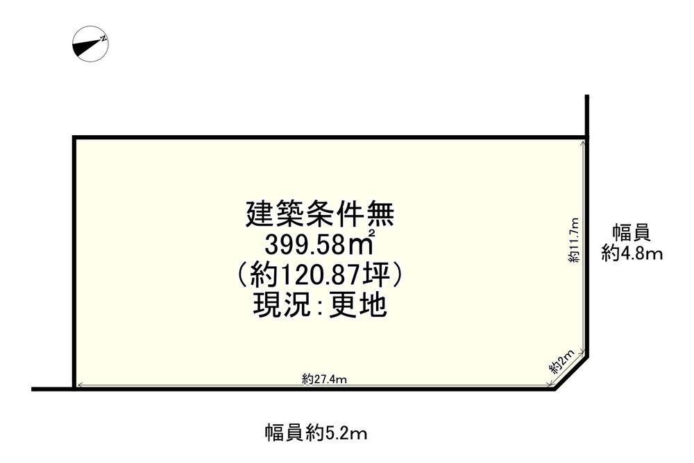 | 建ぺい率・容積率 | 70%・200% | 私道負担・道路 | 無、南東5.2m幅(接道幅27.4m)、北東4.8m幅(接道幅11.7m) | ||