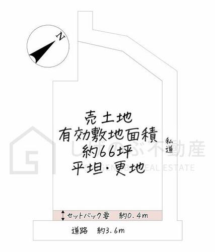 | 備考 | 売主の契約不適合責任免責・現状有姿・公簿取引 有効敷地面積:218.809㎡(66.18坪) 敷地内電線あり・セットバック:有4.84平米・建築条件なし 有効敷地面積 約66坪 平坦・更地 / 条件等:現況渡し | ||||